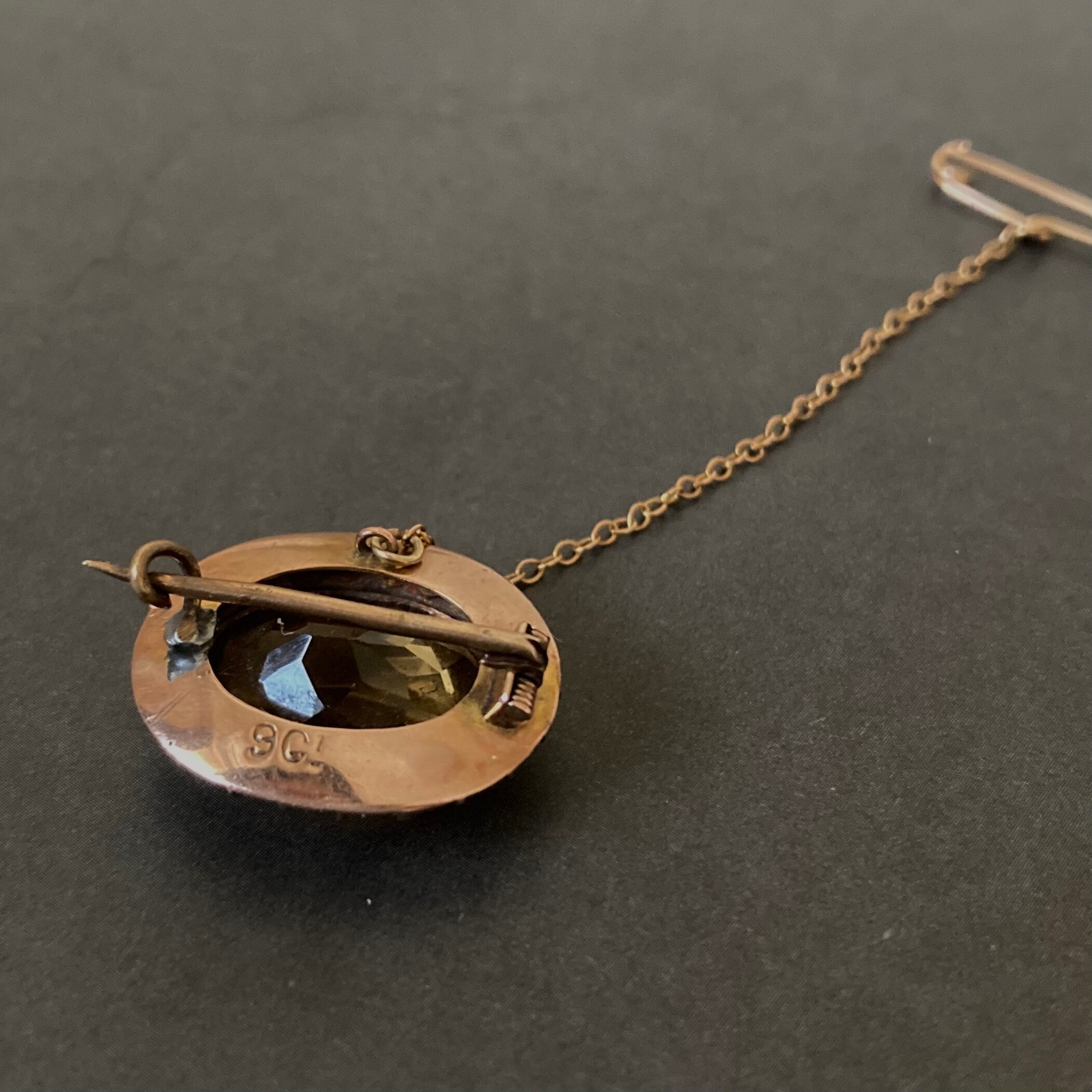 天然クォーツ イエロー シードパールとりまき オーバル ミニブローチ